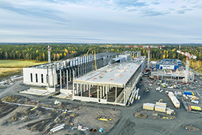 Uuden Hitachi Energy Park -tuotanto- ja teknologiakeskuksen rakennustyöt etenevät vauhdilla. Massiivisen 30 000 neliömetrin kokoisen muuntajatehtaan runko on valmis ja sisätilojen rakentaminen käynnissä